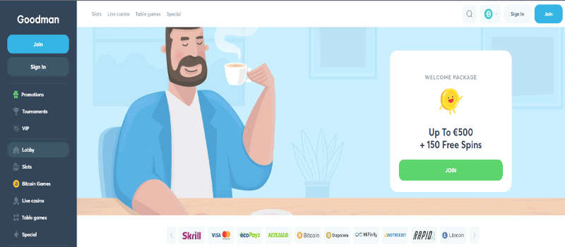 Um dir diesen Bonus zu sichern, musst du bei deiner Einzahlung nur den Goodman Promo Code G1 angeben und einen Betrag in Höhe von mindestens 20 Euro einzahlen.